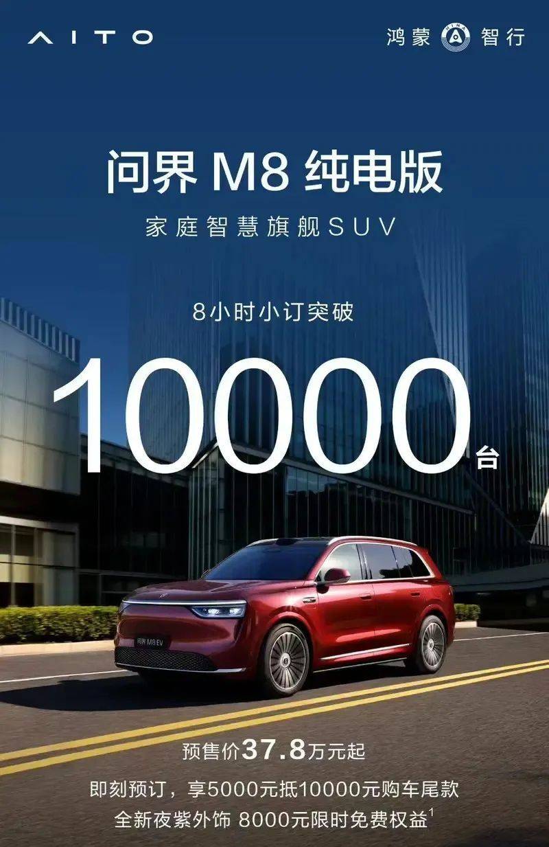 汽车事件一:问界M8纯电版8小时小订突破10000台