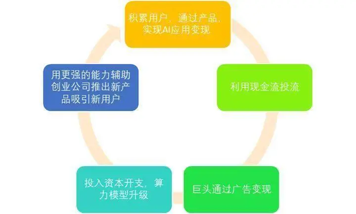 能够维持企业收入的稳定性,自然而然有更多的企业愿意投流推广产品,带动了科技巨头的广告业务收入、模型收入,同时拉动了云业务计算需求,而科技巨头营收激增,就会有更多的流动性进行资本开支,提升模型能力和算力基础设施,服务于AI小而美的应用,最终形成AI内循环。