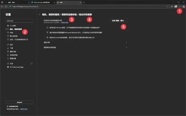 你想换掉 Edge 的默认搜索引擎 bing,要进入 5 层设置选项。即便身经百战的差评君,在找这个位置时,都点错好几次。