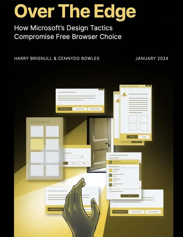 去年 Mozilla 发布了一份报告《Over the Edge》,这份长达 74 页的 PDF 里列举了微软干扰用户选择其他浏览器的各种手段。