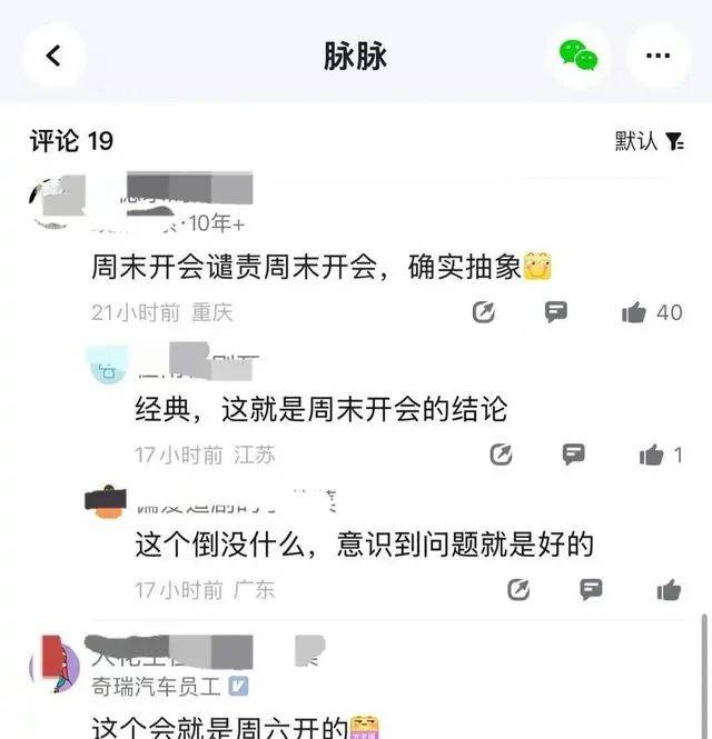 说好了周六不开会的,奇瑞的“加班文化”被怼,还得是00后出马