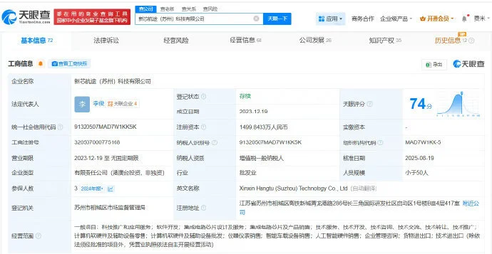 新芯航途(苏州)科技有限公司成立于2023年12月,法定代表人为李俊,经营范围涵盖科技推广和应用服务、软件开发、集成电路芯片设计及服务等。从股东信息来看,该公司现由苏州好望角新芯企业管理合伙企业(有限合伙)、苏州环秀湖鑫诚产业投资发展合伙企业(有限合伙)及上述新增股东等共同持股。公开资料表明,这是一家新兴的自动驾驶芯片设计企业,蔚来此次入股有望为其在自动驾驶芯片研发领域的发展注入新的动力。