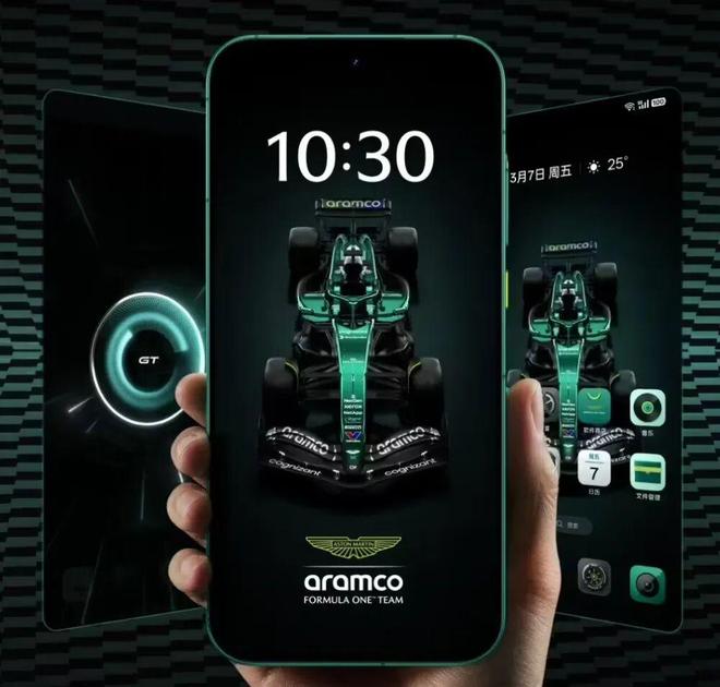 此外,真我GT8 Pro阿斯顿马丁F1限量版采用赛车金属漆感玻璃后盖和一体同色金属中框,绿色流动光泽还原赛车涂装常见的光学变色效果。