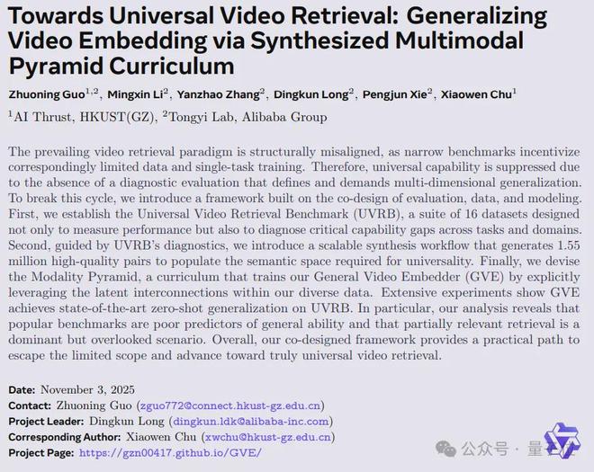 团队不仅关注模型在标准测试集上的性能,更致力于构建一个能真正编码复杂视频语义、适应多样化检索需求的系统性解决方案。