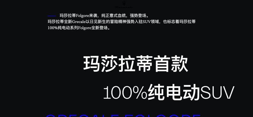 它就是玛莎拉蒂Grecale Folgore,品牌首款纯电中型SUV。