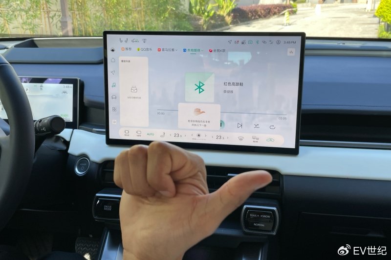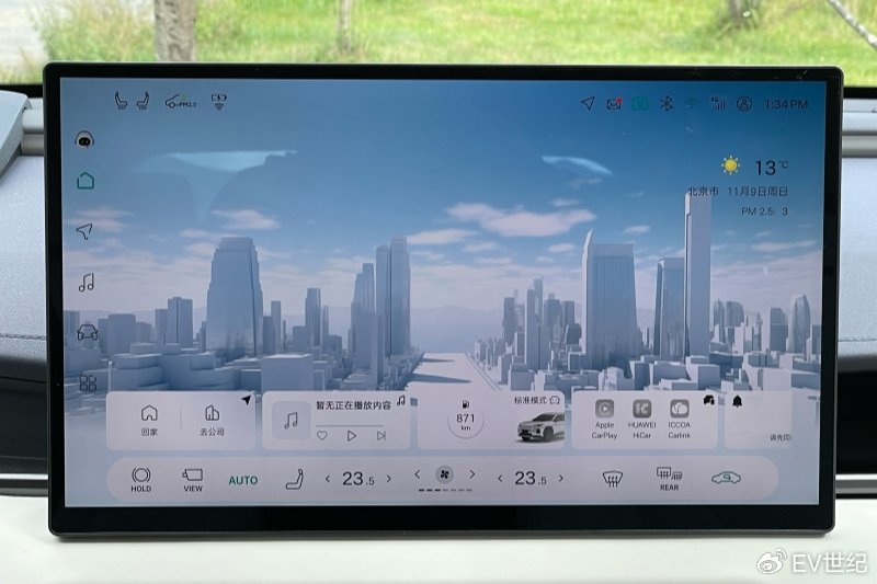 进入车内,整个内饰凸显新能源车型简约又富有科技感的氛围,如果贴住方向盘上的LOGO,你完全可以认为是坐到了某个新势力的车内。