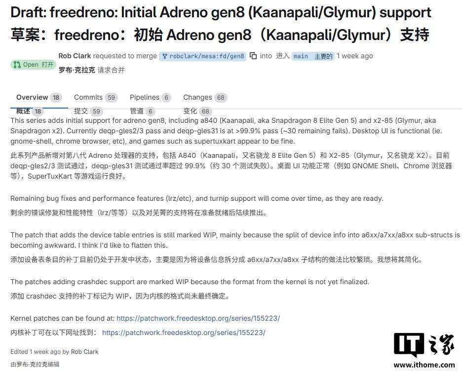 根据 Mesa GitLab 开发者页面及 GameHub Discord 频道披露的信息,一款全新的开源 Turnip 驱动正在开发中,最早将于 2026 年初与用户见面。高通员工兼开发者 Rob Clark 确认,该驱动将明确支持第五代骁龙 8 至尊版的 Adreno 840 GPU,并将兼容骁龙 8 至尊版的 Adreno 830 GPU。
