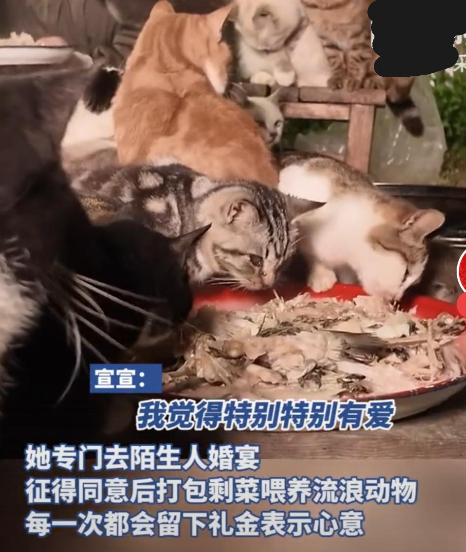 近日,一段女孩打包婚宴剩菜喂养流浪猫的视频在网络上引发广泛关注,其暖心行为收获众多网友点赞。