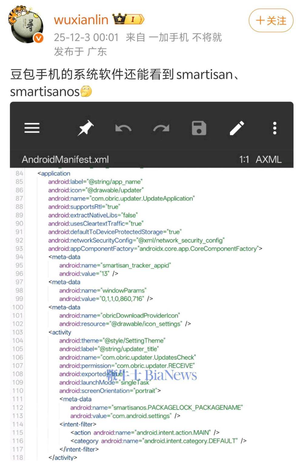 12 月 3 日消息,博主 @wuxianlin 今日分享了豆包手机的系统软件,发现了锤子科技遗留字样,称还能看到 smartisan、smartisanos。