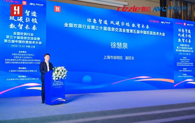 上海市崇明区副区长徐慧泉代表区政府致辞,对大会召开表示热烈祝贺。他指出,轻工厨具是崇明“1+3+X”先进制造业体系的重要组成部分,已培育多家优秀企业。崇明通过政策扶持构建良好政企关系,“十五五”规划之际,诚挚邀请企业家在人才培养、技术创新等领域合作,共享发展机遇。