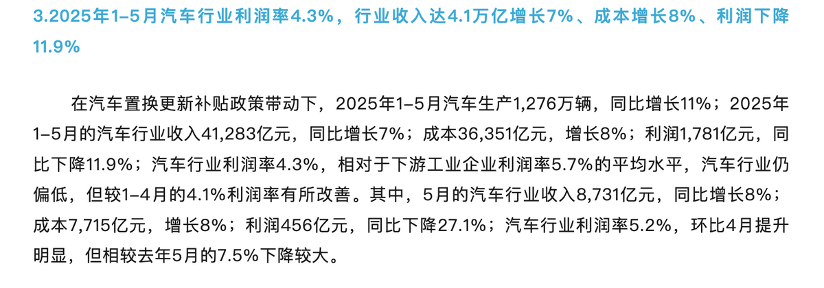 这也是为什么2025年上半年,整个汽车行业的销量增长了11%,收入增长了7%,但利润却下降了近12%。