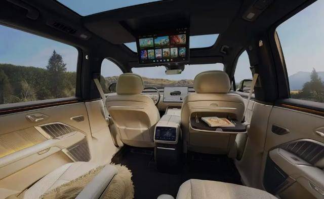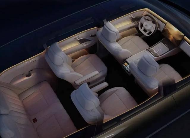 车内采用极简风格布局,三幅式多功能方向盘、悬浮式中控屏与电子怀挡的组合简洁明了,中控台通过层次设计营造出立体感,无线充电面板和杯架的位置恰到好处。值得注意的是,它取消了传统仪表盘,这一大胆设计或许是为了让驾驶员更专注于中控屏的信息显示,也可能与智能驾驶交互逻辑有关。