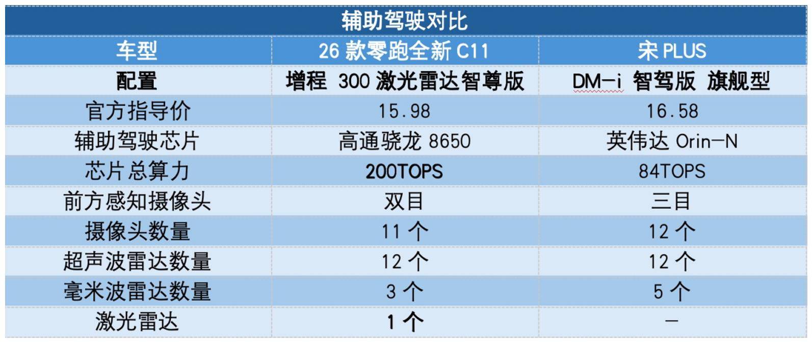 辅助驾驶能力:26款零跑全新C11配备激光雷达 宋PLUS搭载天神之眼