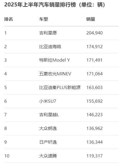 2025上半年中国车市硝烟弥漫,在激烈的角逐中,一份极具分量的销量榜单正式出炉,清晰勾勒出消费者用真金白银投出的市场格局。