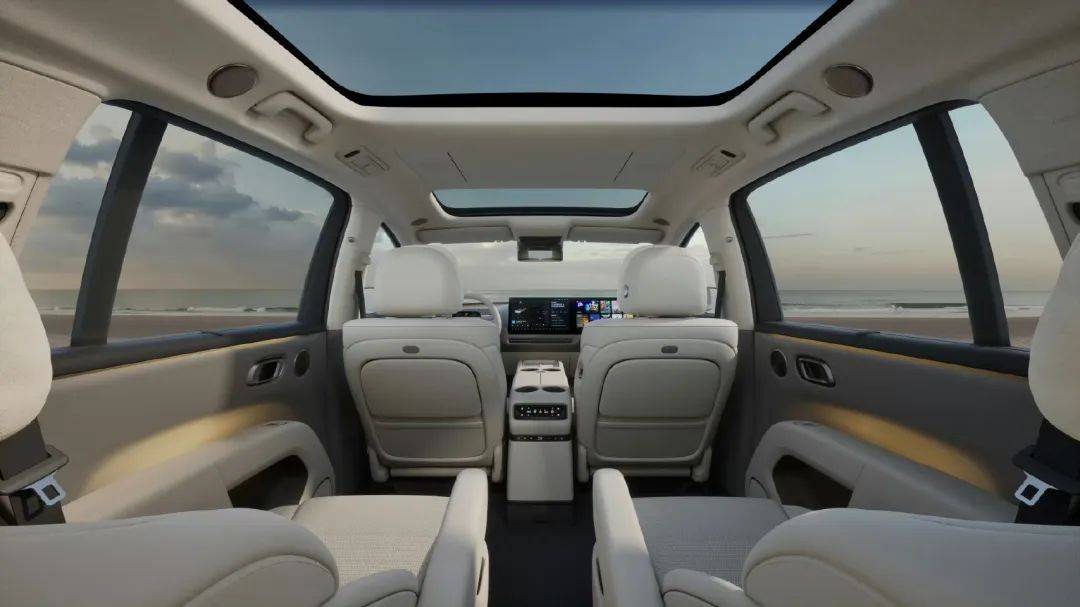 三排座椅都进行了调整。其中,理想i8的前排座椅增加了2厘米的海绵层增加舒适度,且座椅两侧的侧翼面积更大,增大转弯时对腰部的支撑;座椅的通风功能也进行了调整,比如底部为吹风,而背部为吸风,保证凉风不会吹到背部,引起腰疼等。前排座椅后方还为二排乘客增加了小桌板,二排车门处,隐私玻璃、手动遮阳帘全都有。新车后排升级了更大尺寸的高清屏,视觉感观再次提升。