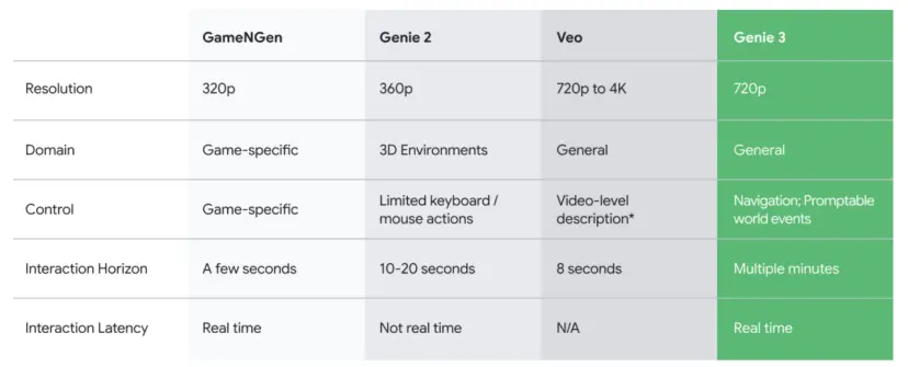 从技术层面来讲,即便是像OpenAI这样的创业公司,也只能能在Transformer这一类模型上和谷歌形成你追我赶之势。虽然一年多以前,是OpenAI推出的Sora炸裂全场,拉爆了人们对于视频生成模型的期待。但是真正有实力能持续投入,在时间维度上持续保持领先的产品,依然是谷歌和它的Veo。而Genie 3,也是谷歌多年默默耕耘,迭代了数个大版本的成果。