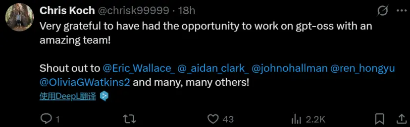 OpenAI发布的gpt-oss系列模型的核心团队成员之一,就有参与多个项目的北大校友任泓宇。