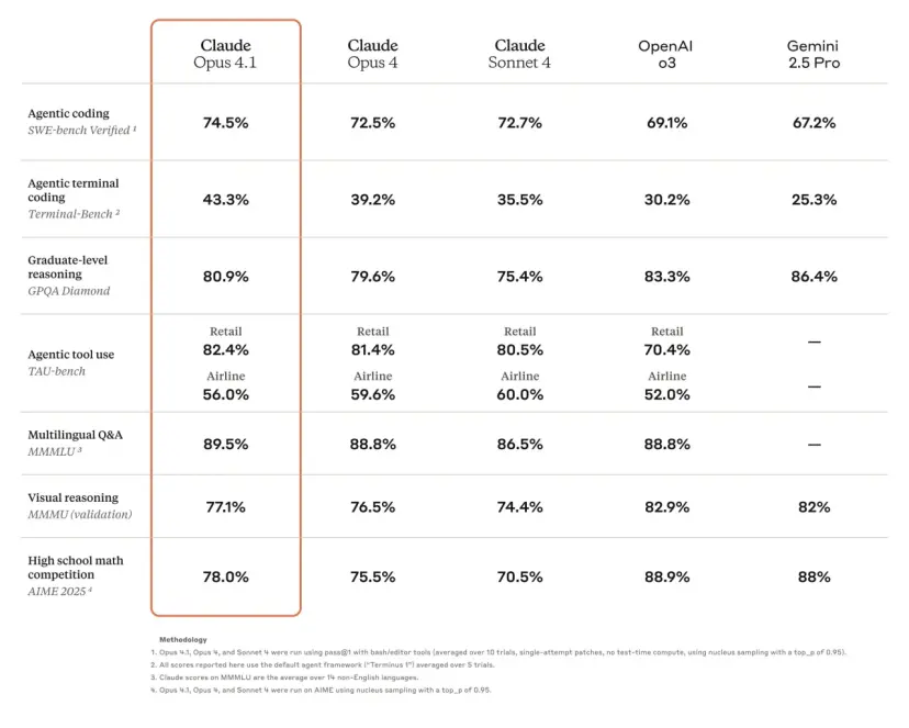 而OpenAI的老冤家,不认AGI只管在AI编程赛道上蒙眼狂奔的Anthropic也不甘寂寞。它更新了自己最顶(gui)级的大模型:Claude Opus 4.1,将AI编程能力的上限再次提升。