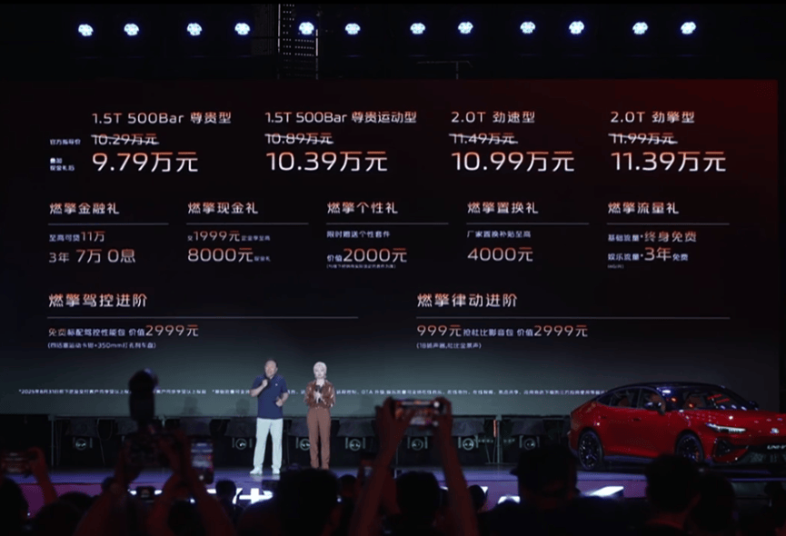 8月7日晚,长安第三代UNI-V在“价格引爆之夜”正式亮相。新车一口气推出4款配置,官方指导价10.29万—11.99万元,叠加8000元现金礼后,最低只要9.79万元就能开回家。对于一台主打运动定位、配置还不低的燃油轿跑来说,这个价格颇有“掀桌”意味。