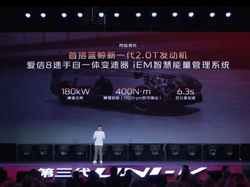 2.0T车型则是新一代蓝鲸引擎,最大功率180kW、峰值扭矩400N·m,配爱信8AT变速箱,零百加速只需6.3秒,妥妥的燃油性能车水准。
