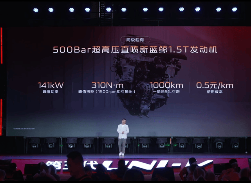动力部分则分1.5T和2.0T两种。1.5T车型搭载500Bar超高压直喷新蓝鲸发动机,最大功率141kW、峰值扭矩310N·m,匹配7DCT变速箱,一箱51L油能就能跑1000公里。
