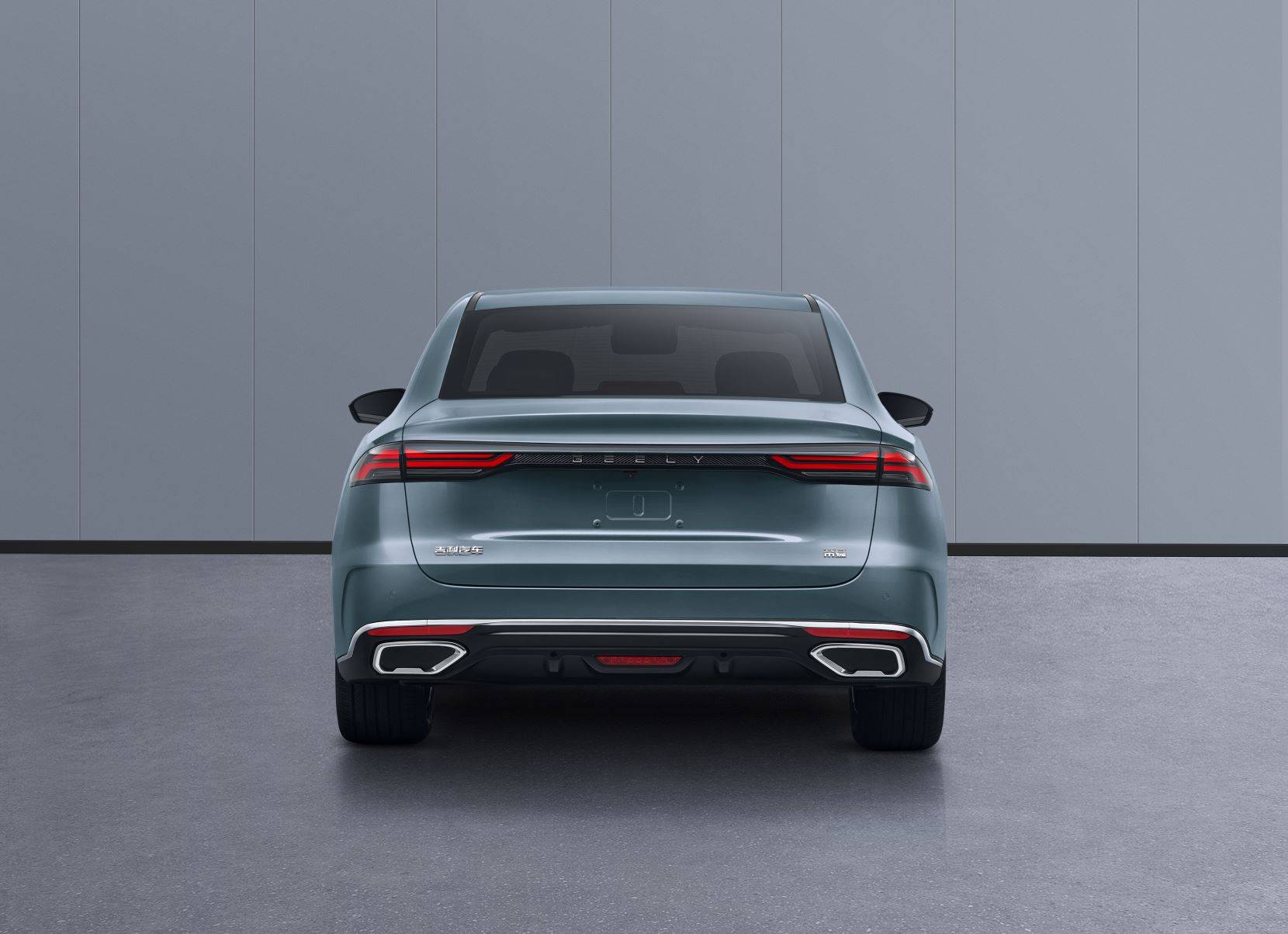 车尾部分,全新帝豪的变化同样明显。虽然不是贯穿式尾灯,但全新设计的尾灯组造型细长,与前大灯组呼应,点亮后辨识度较高。车尾上方配备了小鸭尾式扰流板,增添了运动感。底部则采用了贯穿式镀铬装饰条,搭配双边共两出式排气装饰,进一步提升了车尾的精致感。