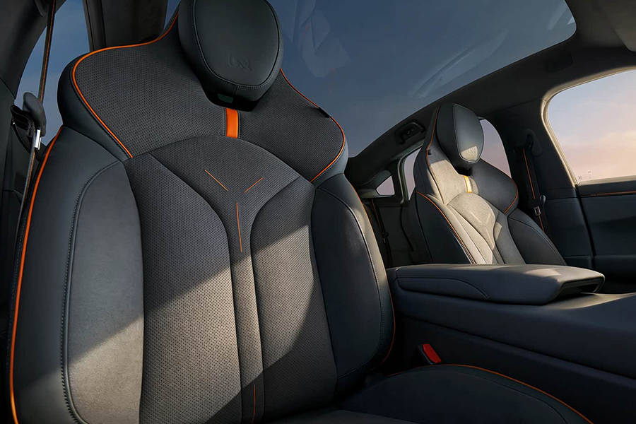 拉开车门后,新车将会提供专属熏黑迎宾踏板,车内提供专属的橙耀辉配色,并且还会升级为专属Dinamica运动座椅,整体的运动氛围得到提升。