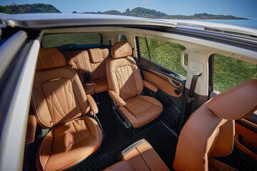 同时,全新揽境配备了6座与7座两种座椅布局。6座版堪称家庭专属舒享陆地头等舱,二排独立座椅除配备电动调节、通风、加热等功能外,还内置3D按摩气袋,可模拟真人按摩手法环绕揉捏,有效舒缓腰背疲劳,配合230 mm行业TOP级的宽敞中央通道,三排进出更从容。7座版本格局多变,通过二、三排座椅的随需放倒,可拓展出进深超过2.2 m的“纯平”空间,轻松容纳婴儿车、露营装备等大件物品,周末全家出游满员的情况下,后备厢容积仍有350L,是同级别唯一可以同时放下2个24寸和2个20寸行李箱的车型。