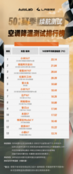 这也是我们此次榜单只释放了10分钟平均降温幅度,而没有释放10分钟降温后车内平均温度的原因。