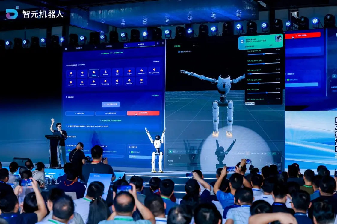 为了实现这一目标,智元机器人公布了一系列重磅举措。在技术层面,公司CTO彭志辉详细解读了以机器人本体为基础,围绕运动、交互、作业三大智能构建的“1+3”全栈技术战略。会上,彭志辉发布了旨在将机器人二次开发难度降至零门槛的动作表达创作平台“灵创平台(LinkCraft)”,开发者可通过该平台像“导演”一样自由编排机器人行为。