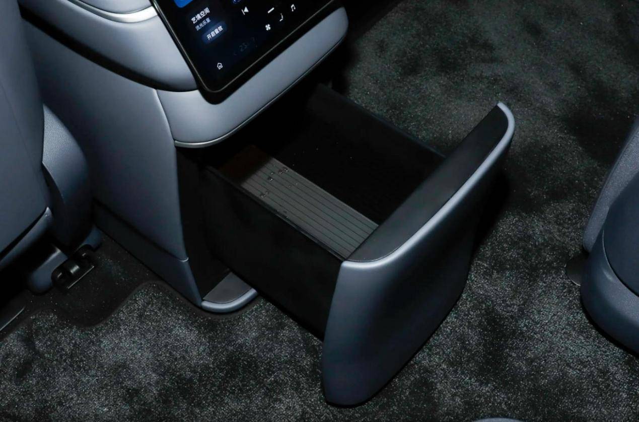 改成了大型SUV,彩电冰箱小桌板不能落下,前排有贯穿的48英寸天际屏,加上16.4英寸中控屏和AR-HUD抬头显示,后排配备了21.4英寸吸顶屏,分辨率3K,但在大型SUV,尺寸偏小。车载压缩机冰箱容积为8.8L,支持-2℃-55℃温度调节,可以冷藏饮品或者加热母婴食品,二排还带有柔性电致变色车窗和折叠小桌板。